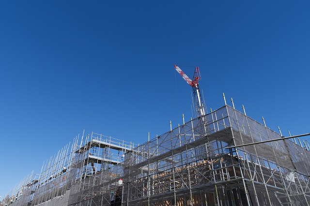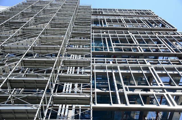 鹿児島市内のマンション新築工事に伴う、足場工事風景です。